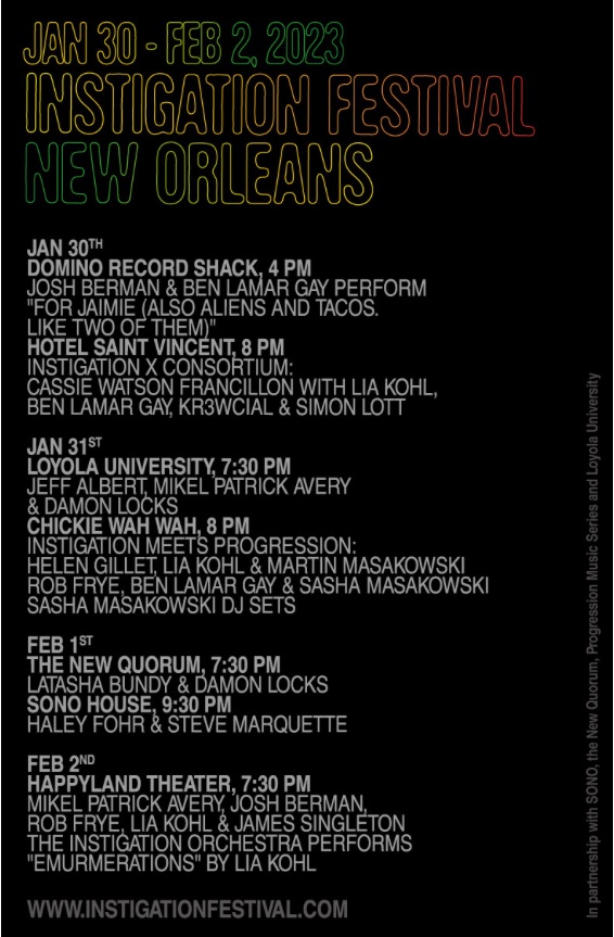 From September 16 – 19, 2021, I had the pleasure of participating in the Instigation Festival in Chicago. Steve Marquette organizes this long weekend of musical collaboration, and it is always fun and artistically rewarding but this year it felt particular restorative for me. It was the first time I had performed daily for four days in what seems like years, and they were all musically rewarding endeavors.